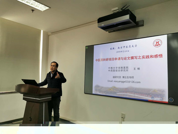 12月4日下午,我院在豐盛樓526會議室舉辦“靈素講壇”第11期學術講座,邀請到中南大學湘雅醫院王楊博士做題為“中醫藥科研項目申請與論文撰寫之實踐和感悟”專題報告。馬勇院長、中西醫結合學科帶頭人黃熙教授以及學院教研骨幹、研究生代表參會,活動由孫東東副院長主持。