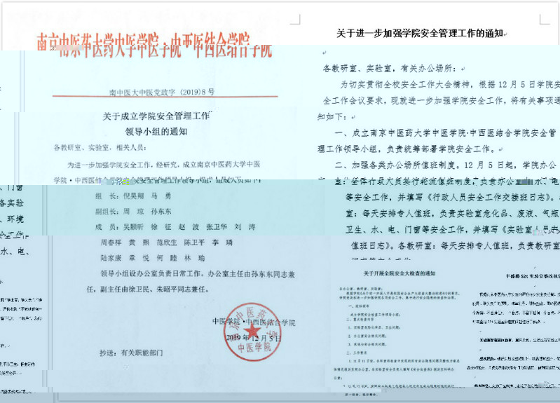 一直以來,我院高度重視安全工作,堅持實驗室安全督導檢查常态化、落實科研實驗室安全管理制度化,嚴格遵守學校各項管理規定,積極配合各項安全檢查和整改工作,建立規章制度、成立工作組、簽訂安全協議。自學生返校,院領導即組織對各教學和科研實驗室進行了安全走訪檢查,指導安全隐患排查工作。