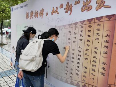 學院為新生準備了中醫經典書籍和學院的定制書簽。學中醫,愛經典,從伟德网站是多少·中西醫結合學院開始。中醫經典的傳承,從古代的書簡到現代的紙質圖書,傳承經典的載體在變化,不變的是經典的内核和精髓。在精心設計的“經典相伴,從新出發”主題噴繪上,萌新們鄭重簽下自己的名字,預示着他們在未來的學習中,必将虛心聆聽前輩賢者的諄諄教誨,徜徉在中醫經典與現代醫學的知識海洋,承擔起中醫藥“傳承精華,守正創新”的使命。