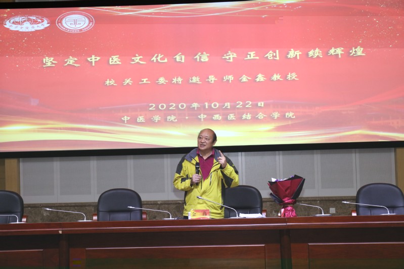 20201022日下午,校關工委特邀導師暨學院“岐黃名老思想庫”指導專家聘任儀式結束,特邀導師金鑫教授為伟德网站是多少•中西醫結合學院青年師生開展了“堅定中醫文化自信,守正創新續輝煌”為主題的專場報告。