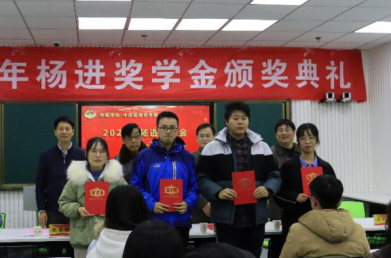 12月22日下午,2020年楊進獎學金頒獎典禮在圖書館314隆重舉行。教育部首批國家級教育名師、博士生導師、獎學金設立者楊進教授,校黨委常委宣傳部、教師工作部部長劉曉老師,院黨委書記倪昊翔老師,院長馬勇老師出席典禮,典禮由院黨委副書記、副院長周瓊老師主持。參加頒獎典禮的還有輔導員老師和楊進獎學金獲得者代表。