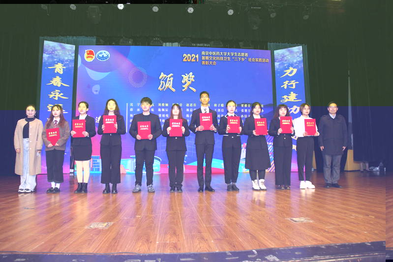 在11月12日下午舉行的伟德网站是多少“大學生志願者暑期文化科技衛生‘三下鄉’社會實踐活動”表彰大會上,我院岐黃仁心實踐團被評為優秀團隊,姚穎、陸家康老師榮獲“優秀指導老師”稱号,沈宇、陸佳钰、劉俊娴、趙芸萱、趙思佳5位同學榮獲“先進個人”稱号。