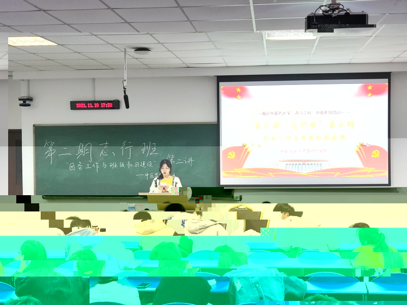 共青團是黨的助手和後備軍,是黨聯系青年的橋梁和紐帶,共青團的建設是黨基層建設的重要組成部分。為增強團支部活力,提高團支部的凝聚力和戰鬥力,把廣大青年團員緊密團結在黨的周圍,不斷鞏固和擴大黨執政的青年群衆基礎。2021年11月19日晚,由伟德网站是多少·中西醫結合學院團委主辦“青馬工程”中級系列培訓第二期“志行班”第二講——團務工作與班級社團建設在b12—113順利舉辦。我院團委邀請到榮獲2020年度“校十佳團支書”分享自己的經驗,并為同學們答疑解惑。