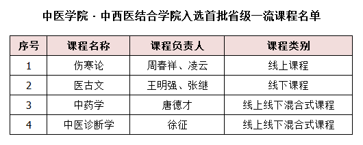 近日,江蘇省教育廳印發《關于公布首批省級一流本科課程認定結果的通知》(蘇教高函〔2021〕9号),我院傷寒論、醫古文、中藥學、中醫診斷學4門課程成功入選。