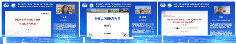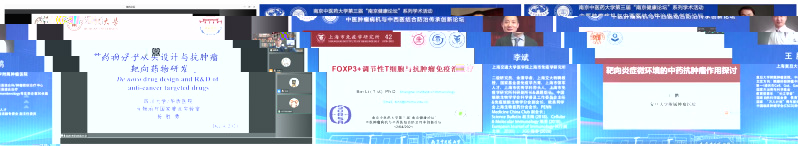 下午的線上論壇,四川大學楊勝勇、上海交通大學李斌、 複旦大學王鵬、 上海中醫藥大學王炎、杭州師範大學隋新兵、蘇州大學汪超等6位專家分别做題為《基于結構的抗腫瘤藥物發現》、《FOXP3+調節性T細胞與抗腫瘤免疫治療》、《靶向炎症微環境的中藥抗腫瘤作用探讨》、《中醫情志緻病理論在腫瘤中的應用與展望》、《腫瘤治療抵抗與幹預策略》以及《基于細胞的腫瘤免疫治療遞送研究》的學術報告。伟德网站是多少醫學院韓欣以及伟德网站是多少·中西醫結合學院畢蕾、孫東東擔任主持。