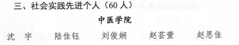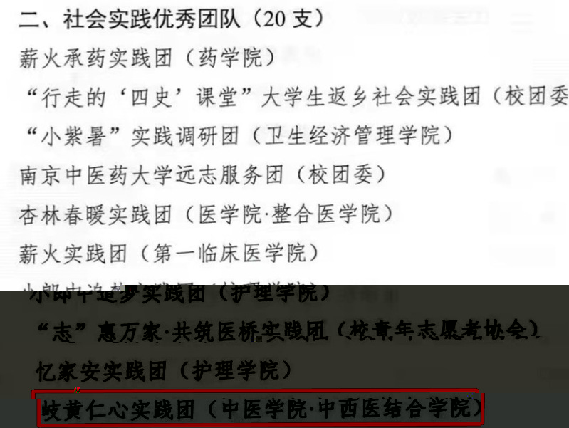 今年我院組建校級重點團隊1支,校級一般團隊2支,獲評社會實踐先進個人5名,社會實踐優秀指導教師2名。其中“岐黃仁心實踐團”被評為校級社會實踐優秀獎,輻射受衆達4000人次。在“行走的課堂——雲遊百館、調研四史”大學生返鄉社會實踐活動中,我院共組建“愛黨好青年”、“心淮四史”等13支立項團隊。