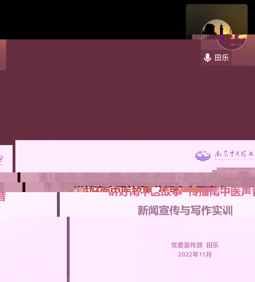 為了幫助“青馬班”學員熟練掌握新聞宣傳稿的寫作方法,提升書面表達技能,11月23日晚,我院分團委在線上開展了第三期“青馬工程”“志行班”第三講——“新聞宣傳與寫作實訓”活動,青馬班全體學員參會,本講由校黨委宣傳部田樂老師主講。 田樂老師由習近平總書記在全國宣傳思想工作會議上的講話引入培訓内容,從“高校新聞宣傳工作的意義”、“我們身邊有哪些好故事”、“怎樣講好南中醫故事”三個闆塊展開講解。首先,田樂老師從宏觀、中觀、微觀三個層面闡釋了新聞宣傳工作在高校的意義;接着,田樂老師結合相關事例指出,要善于發現身邊生動鮮活的好故事,強調講故事過程當中獨特性、稀缺性、唯一性、優質性、新穎性、服務性這六大着力點;最後,田老師結合大量實際新聞宣傳的案例,用“多讀多看、精心策劃、勤練修改”這十二字精煉概括了提升新聞稿撰寫質量、講好南中醫故事的方法。 通過本次培訓,學員們充分認識到新聞宣傳工作的重要性,切實提高了同學們的寫作與新聞宣傳能力。