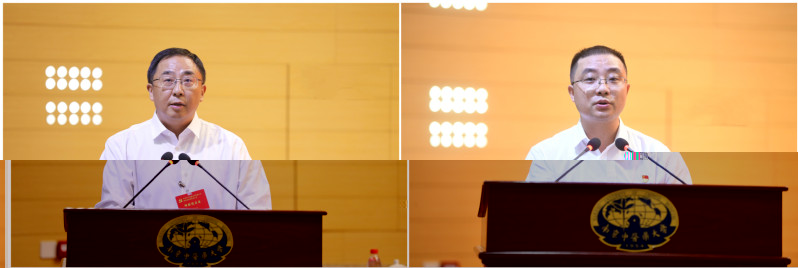 陳軍、陳小進分别代表校内各民主黨派團體和群團組織向大會緻賀詞
