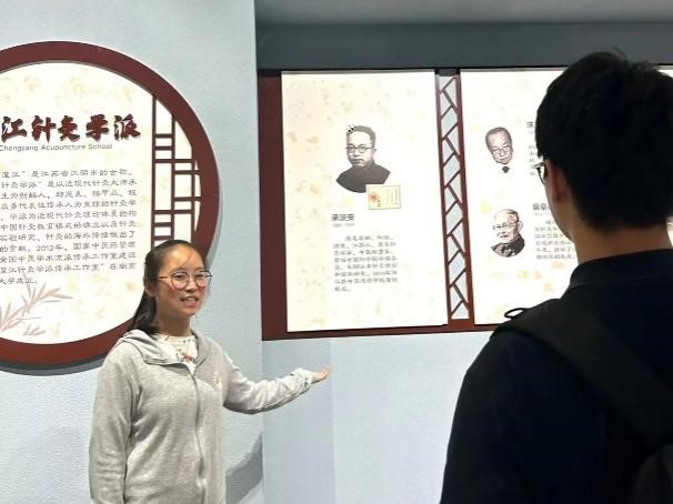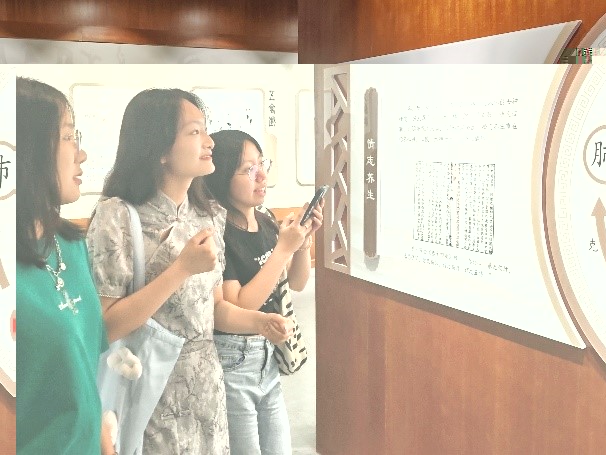 在養生文化館中,同學們“沉浸式”體驗中醫養生文化的曆史内涵。八段錦、五禽戲、太極拳、針灸推拿、歲時節令……同學們深入體會中醫藥文化在日常養生中的妙用。