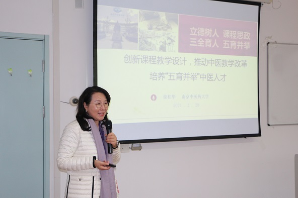 徐桂華教授為我院教師做教學能力提升培訓,她以《創新課程教學設計,推動中醫教學改革,培養“五育并舉”中醫人才》為題,緊扣學院課程特點,以育人為中心、用心用情、與時創新,從教學理念創新設計、教學内容創新設計、教學方法創新設計、勞動教育創新設計等幾方面的成功教學實踐,與青年教師們進行了深入的交流,既高屋建瓴,又緊貼我院實際,很強的針對性和指導使大家感受差距不足與動力方向的同時,引發了大家的思想碰撞與激蕩,具有深遠的意義。