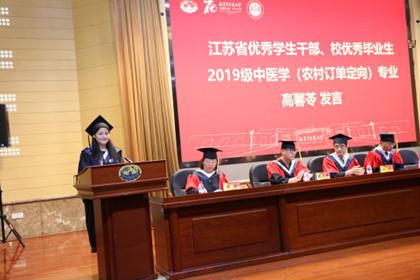 江蘇省優秀學生幹部、校優秀畢業生2019級中醫學(農村訂單定向)專業高馨苓發言