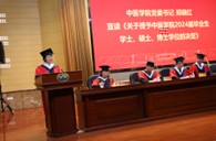 鄭書記宣讀《關于授予2024屆畢業生學士、碩士、博士學位的決定》,主席台領導、導師為2024屆畢業生頒發學位證書、撥正流蘇