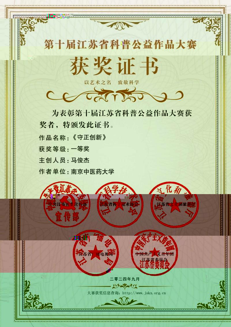 近日,由中國共産黨江蘇省委員會宣傳部、江蘇省科學技術協會、江蘇省文化和旅遊廳、江蘇省廣播電視局、中國共産主義青年團江蘇省委員會聯合舉辦的第十屆江蘇省科普公益作品大賽評選結果正式公布(蘇科協發〔2024〕137号),我校紀錄片《守正創新》獲成人組(科普影視類)一等獎,是繼去年《道術合一》後再次獲得該獎項一等獎。此外,該片今年同時獲得江蘇省優秀科普作品一等獎,這是省内中醫藥系統唯一的一等獎。