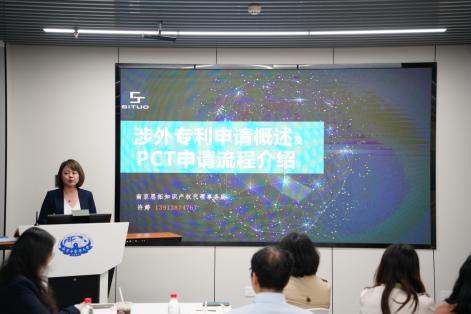 專利代理師許婷老師,作為南京市鼓樓區知識産權專家庫首批入庫專家,為師生們帶來了涉外專利的概況及PCT申請流程的詳細介紹。通過許老師的講解,讓參會老師對涉外專利的申請有了更深入的了解,為老師們揭開了PCT專利申請的神秘面紗。