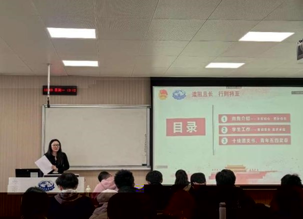 中醫(定向)212班的劉茄鑫結合實例,從活動前期、中期、後期三個階段向同學們講述了開展社會實踐活動的方法,并對标十佳團支部、青年五四獎章的參評條件,鼓勵同學們要勇于嘗試,踏實積累,在更加廣闊的舞台上施展才幹,實現夢想。